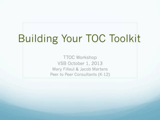 This document outlines tips and best practices for substitute teachers (TTOCs). It discusses the advantages of being a TTOC such as visiting different classrooms and schools. It also breaks down the key parts of a teaching assignment: preparing before students arrive, starting the class, teaching during class, ending the class, and tasks after students leave. Each section provides specific guidelines such as dressing professionally, reviewing lesson plans, taking attendance, and completing a report for the regular teacher. The document also discusses how to handle common student issues and developing an emergency toolkit. Attendees are encouraged to provide feedback to help improve future workshops.