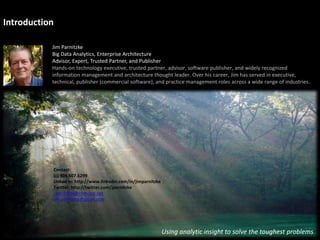 1) The document discusses adopting an effective decision making framework using common methods and processes. It emphasizes capturing analytic insight as an asset and improving collaboration.