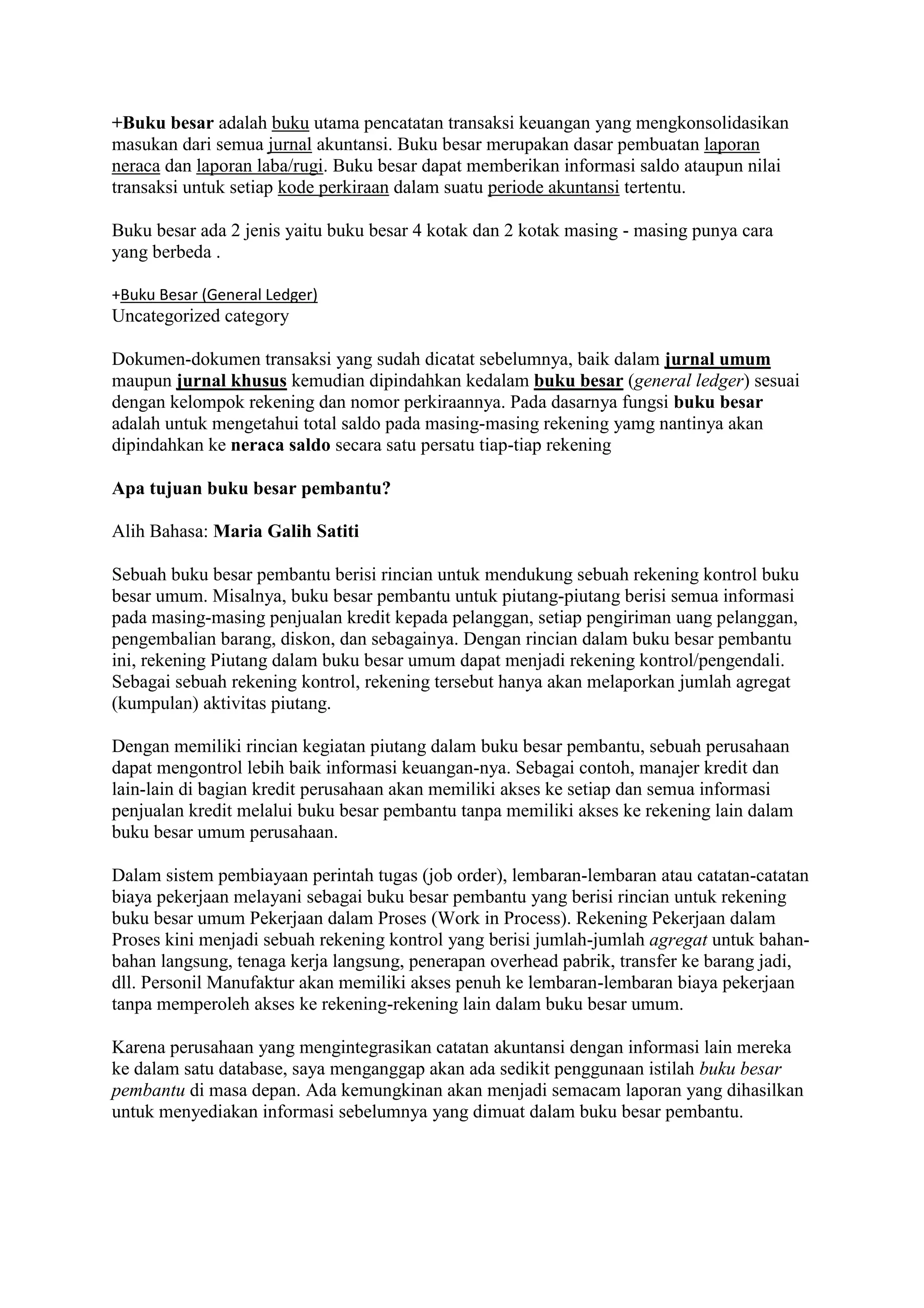 Buku Besar adalah catatan akhir yang merupakan kumpulan rekening neraca dan rugilaba yang merangkum catatan akuntansi. Jumlah rekening yang digunakan oleh perusahaan tergantung pada jenis perusahaan, besar kecilnya perusahaan dan informasi yang dibutuhkan. Bila ruang lingkup perusahaan sudah cukup luas, akan terdapat jumlah transaksi yang cukup besar. Dalam hal ini catatan dalam rekening buku besar