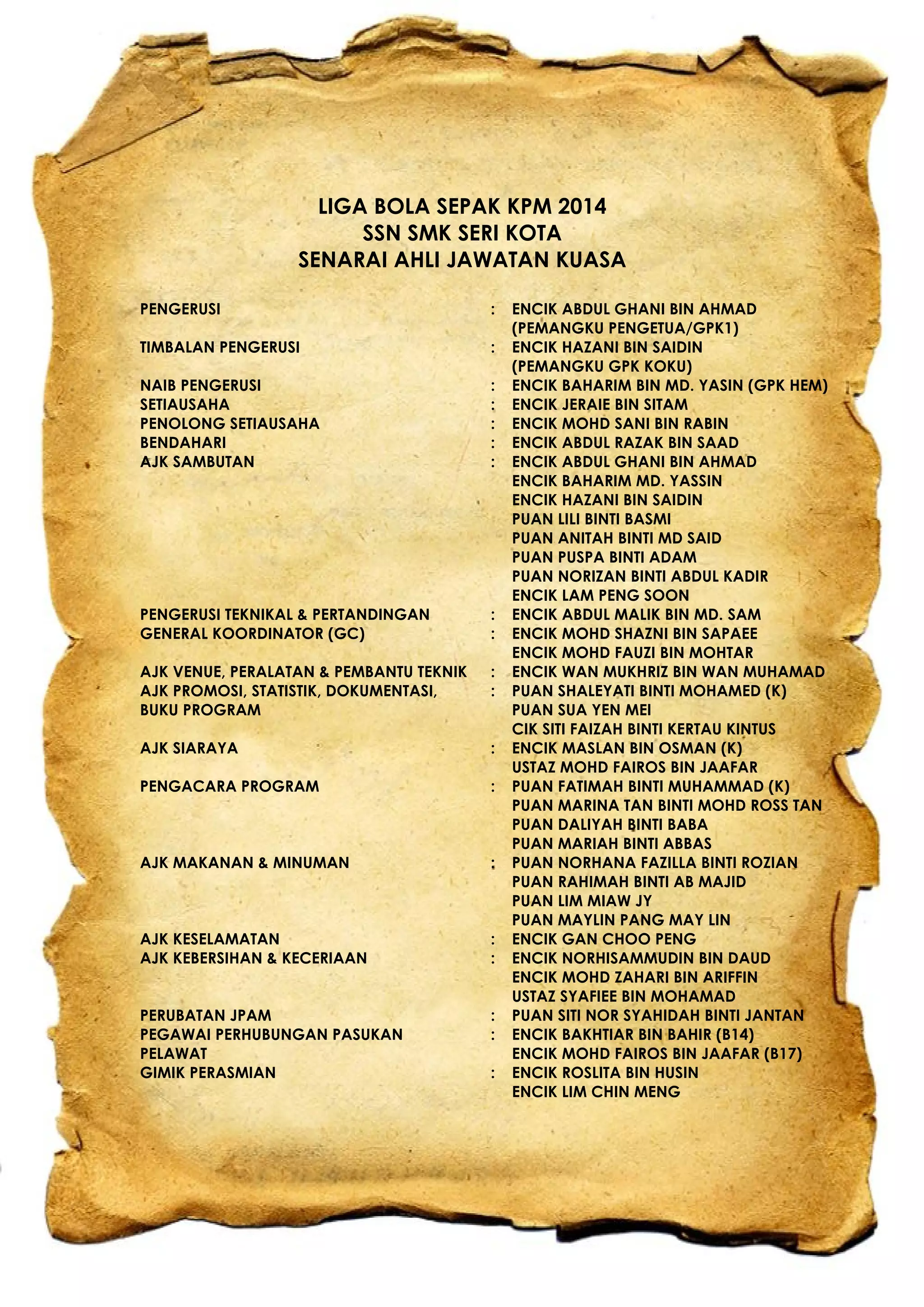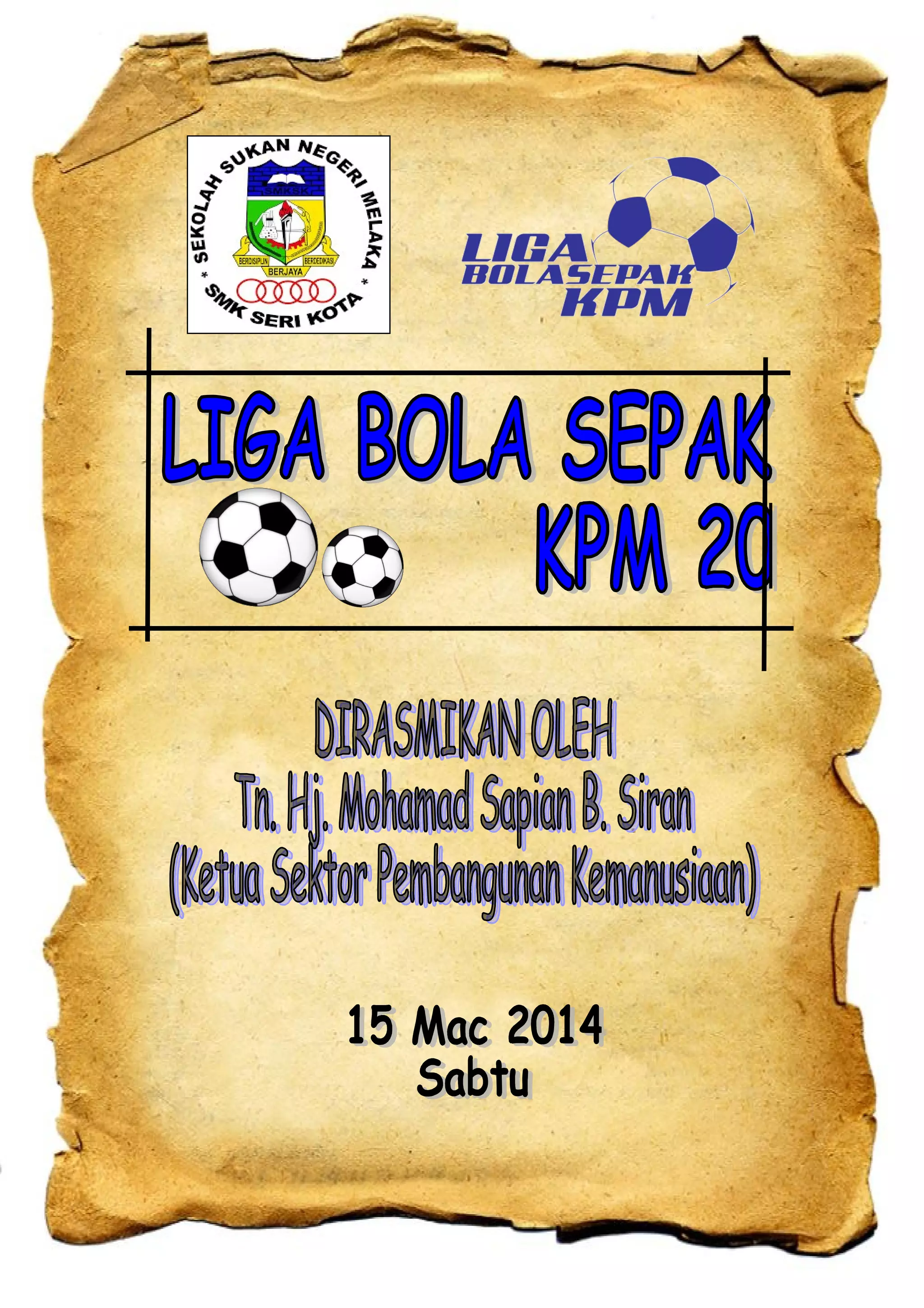 This document contains information about the 2014 KPM Football League organized by SMK Seri Kota including: