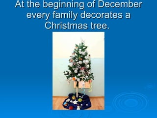 The kindergarten families in Bulgaria decorated Christmas trees in early December 2012 and the children helped their parents make ornaments. The children practiced Christmas songs, dances, and poems to perform. Everyone celebrated and wished each other a Merry Christmas and a Happy New Year.