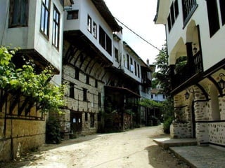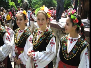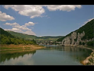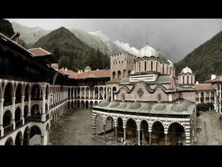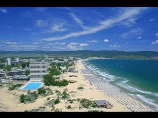 Bulgaria is a parliamentary republic located in Southeastern Europe, with a population of 7.64 million people living within its 110,910 square kilometer area. Key facts about Bulgaria include its capital and largest city Sofia, highest mountain peaks in the Rila Mountains including Musala at 2,925 meters, over 200 lakes, and transition to a market economy in the late 1980s after being a socialist republic since 1946. Some top tourist destinations highlighted are the Rila Monastery, Madara Horseman rock relief, the Thracian tomb at Kazanlak, and historic cities like Veliki Preslav and Shipka.