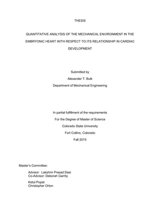 This thesis examines the mechanical environment of the developing embryonic heart through quantitative analysis. It finds that a particular range of pressures from chamber contraction/expansion and resistance from systolic closure are necessary to maintain retrograde flow, which induces valve formation. It also develops a method to integrate spatiotemporal analysis from multiple focal planes into a more accurate 3D analysis of intracardiac blood flow. This increases understanding of embryonic heart mechanics and flow measurement.