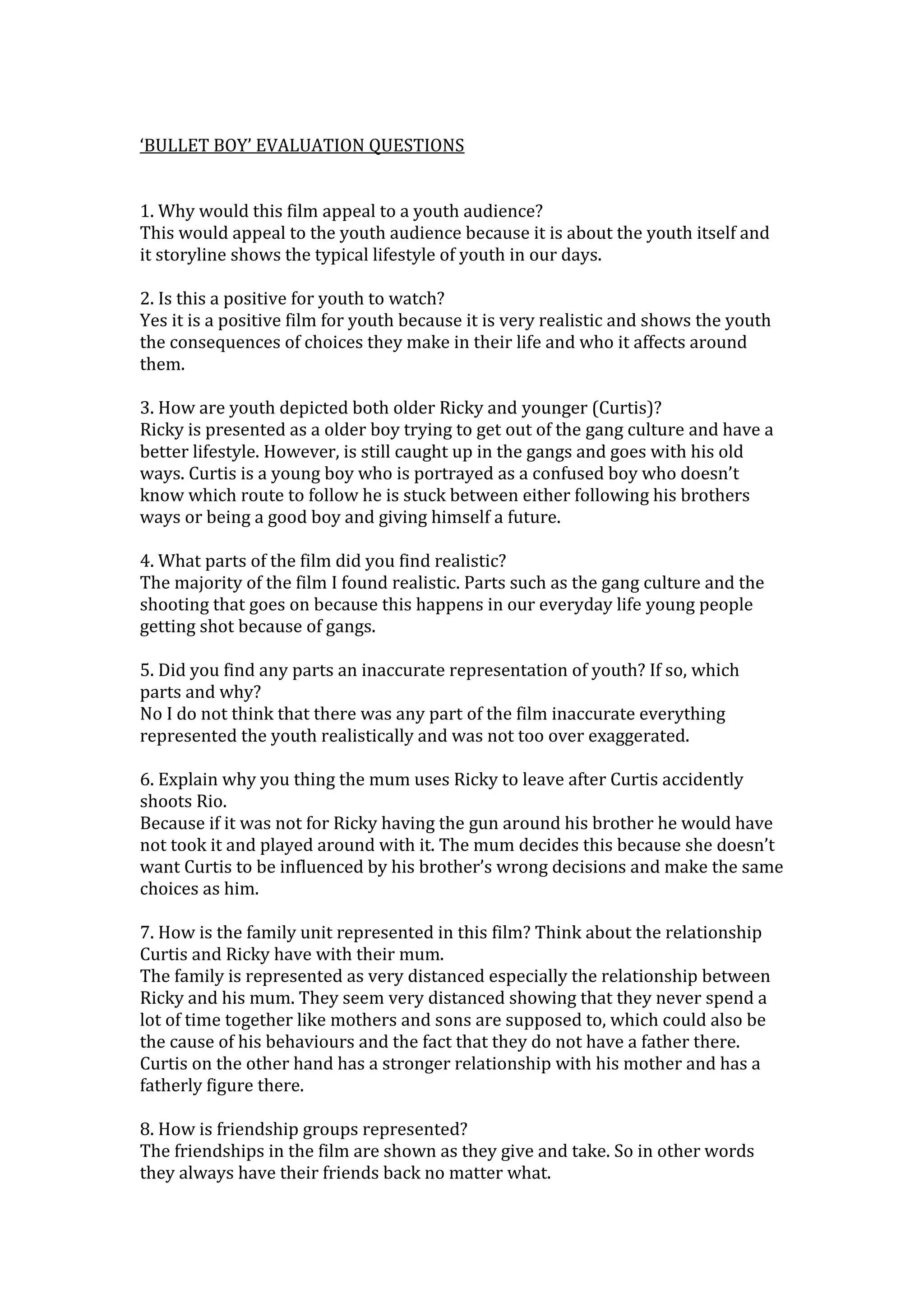 This film depicts the gang culture and its consequences experienced by two brothers, Ricky and Curtis. Ricky is older and trying to leave the gang life behind, but struggles to escape its influence. Curtis looks up to his brother but does not know whether to follow in his footsteps or make better choices. The film aims to realistically portray the pressures of gang involvement faced by youth and show viewers the impact of their choices on themselves and their families. It uses the brothers' relationship to demonstrate how environment and role models can shape one's path in life.