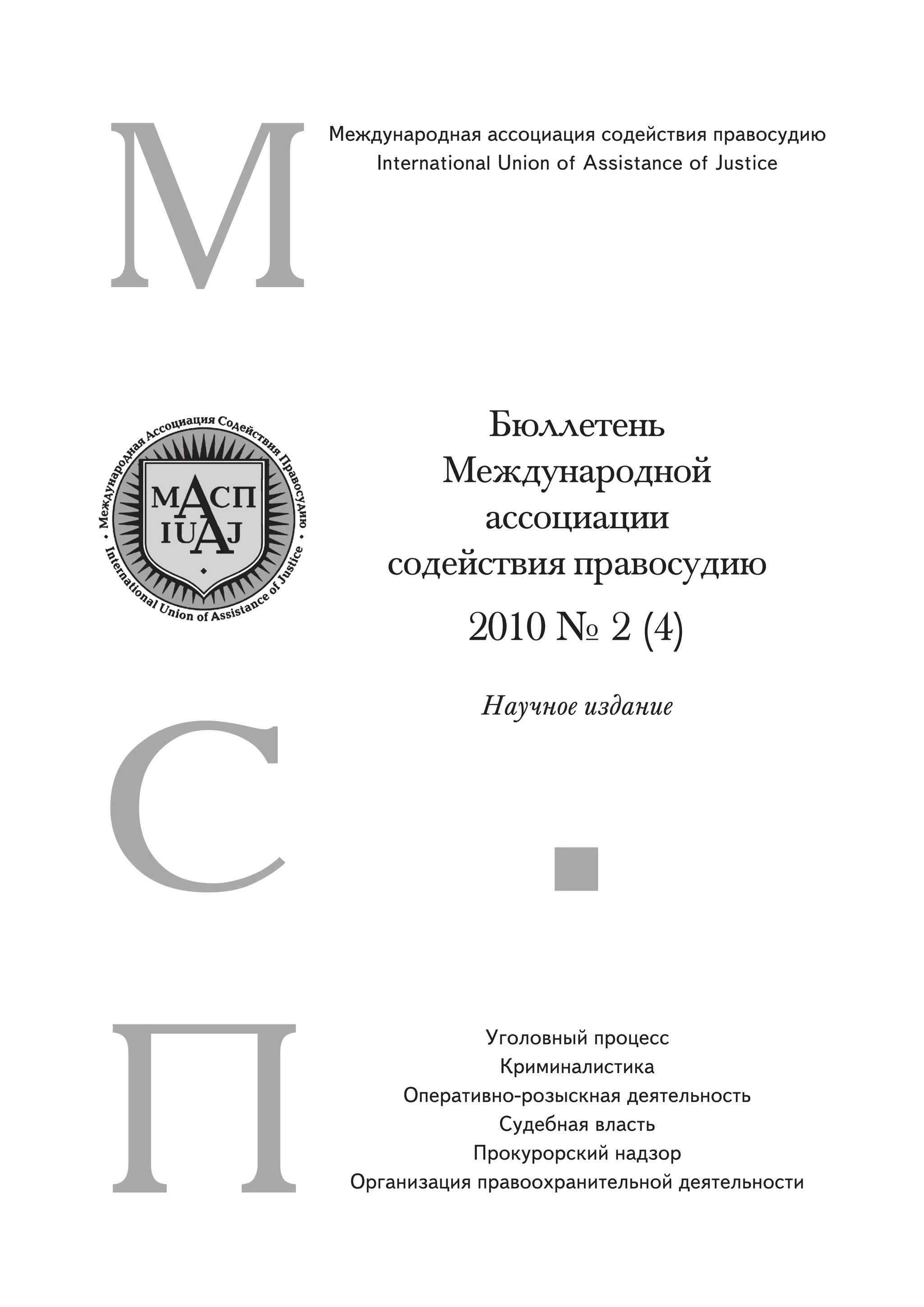 Бюллетень Международной ассоциации содействия правосудию. 2010. № 2 (4), в котором опубликованы материалы прелиминарных конференций МАСП «Эволюция криминалистики: дидактика и наука», «Диалектика уголовного процесса»,