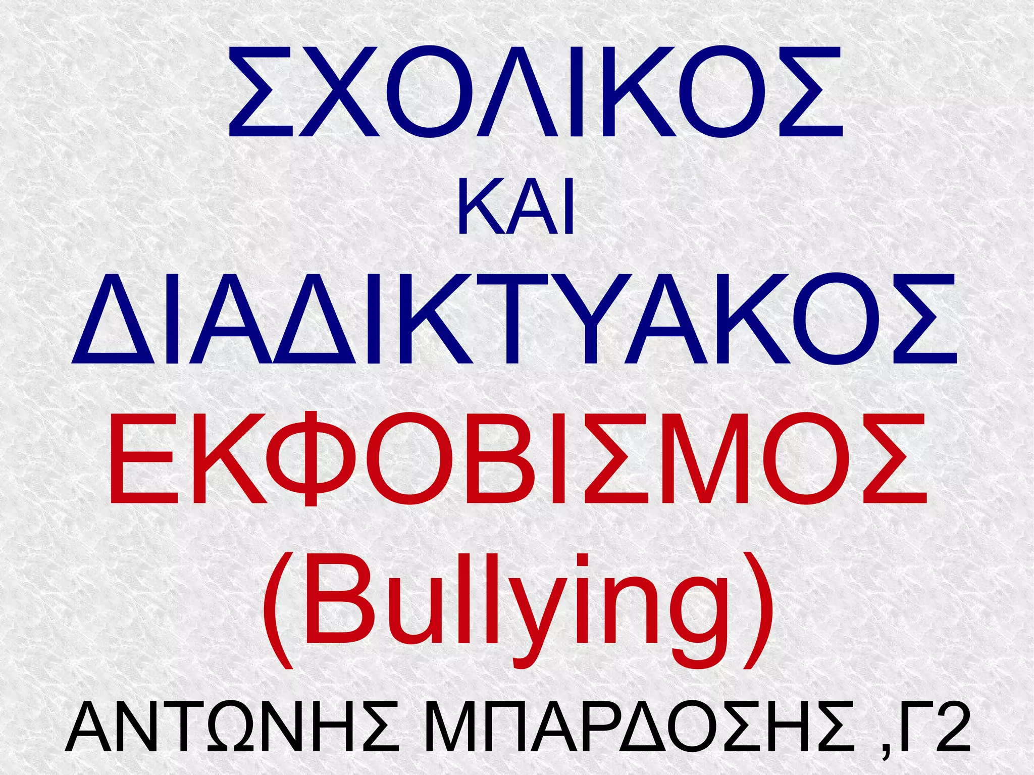 ΕΝΔΟΣΧΟΛΙΚΗ ΒΙΑ ΚΑΙ ΕΚΦΟΒΙΣΜΟΣ PPTX