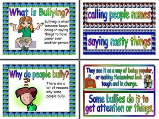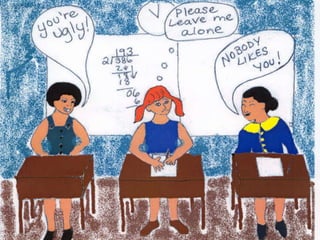 The document defines bullying as repeated, deliberately hurtful behavior that occurs in relationships with power imbalances, covering various types including physical, social, verbal, and cyberbullying. It discusses the motivations behind bullying, the consequences for both bullies and victims, and emphasizes the importance of taking action against bullying, such as seeking help and supporting victims. Additionally, it offers insights for potential bullies on how to recognize and change their behavior, highlighting the need for empathy and respect in interpersonal relationships.