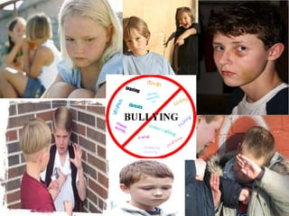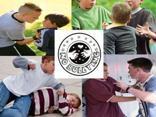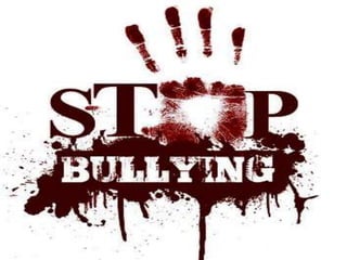 Bullying in schools takes many forms including verbal, physical, social, and cyber bullying. Bullying often involves an imbalance of power and is aggressive behavior that causes harm. Both bullies and their victims can experience negative effects on their mental health, academic performance, and social relationships. Bullies may engage in harmful behavior to fulfill a need for power or dominance, and some are rewarded for bullying. Dealing with a bully can include ignoring them, seeking help from authorities, remaining civil, and finding alternative sources of enjoyment away from the bully.