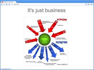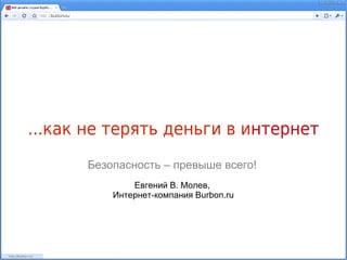 Документ рассматривает угрозы интернет-безопасности и способы защиты данных, включая риски утраты информации и финансовых потерь. Он описывает важность защиты электронных платежей и использования надежных систем, а также упоминает правила регистрации доменов и защиты персональных данных. Также приведены рекомендации по выбору хостинга и CMS для интернет-бизнеса.