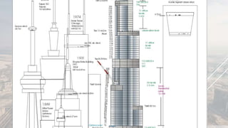 The Burj Khalifa, located in Dubai, UAE, stands at 828 meters tall and has been the tallest building in the world since 2008. Constructed at a cost of $1.5 billion, it features innovative design inspired by the hymenocallis flower and employs advanced construction technologies, including high-pressure concrete pumping and specialized wind-resistant architecture. The building boasts numerous records, including the highest occupied floor and the world's highest elevator.