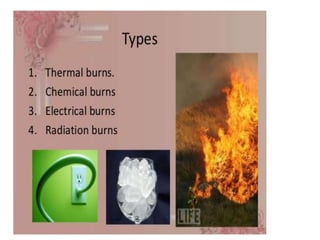 - Burns are a leading cause of injury in children, with scalds being the most common type especially in young children. Thorough history is important to identify potential abuse.