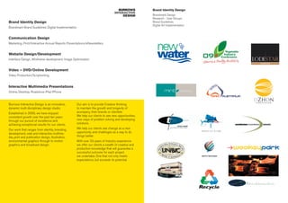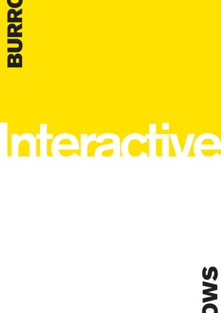 Burrows Interactive is a multi-disciplinary design studio established in 2000 that provides branding, website design, print materials, presentations and video production services. They help clients develop brand identity, guidelines, digital assets and marketing materials. With over 33 years of industry experience, Burrows aims to provide creative solutions that maintain growth and exceed clients' expectations. Their work includes identity design, web and interactive development, print, illustration and motion graphics.