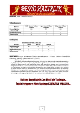 Sınav Şekli: 30 metre Sürat Koşusu, 20 Metre Mekik Koşusu ve El Kuvveti Testinden Oluşmaktadır.