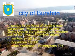 The Housing and Municipal Reform Support Center implemented several energy efficiency projects in the city of Burshtin, Ukraine between 2005-2008. The projects included thermo rehabilitation of apartment buildings which improved insulation and heating systems, resulting in expected energy savings of at least 30%. Energy efficiency measures were also implemented in two public buildings - a school and kindergarten - including installation of individual heating units, energy efficient lighting, and other upgrades. Street lighting was improved by replacing incandescent lamps with LED lights, achieving a payback period of over two years. The projects aimed to provide both immediate financial benefits from lower energy costs as well as long-term environmental and institutional sustainability through policies, education, and management structures.