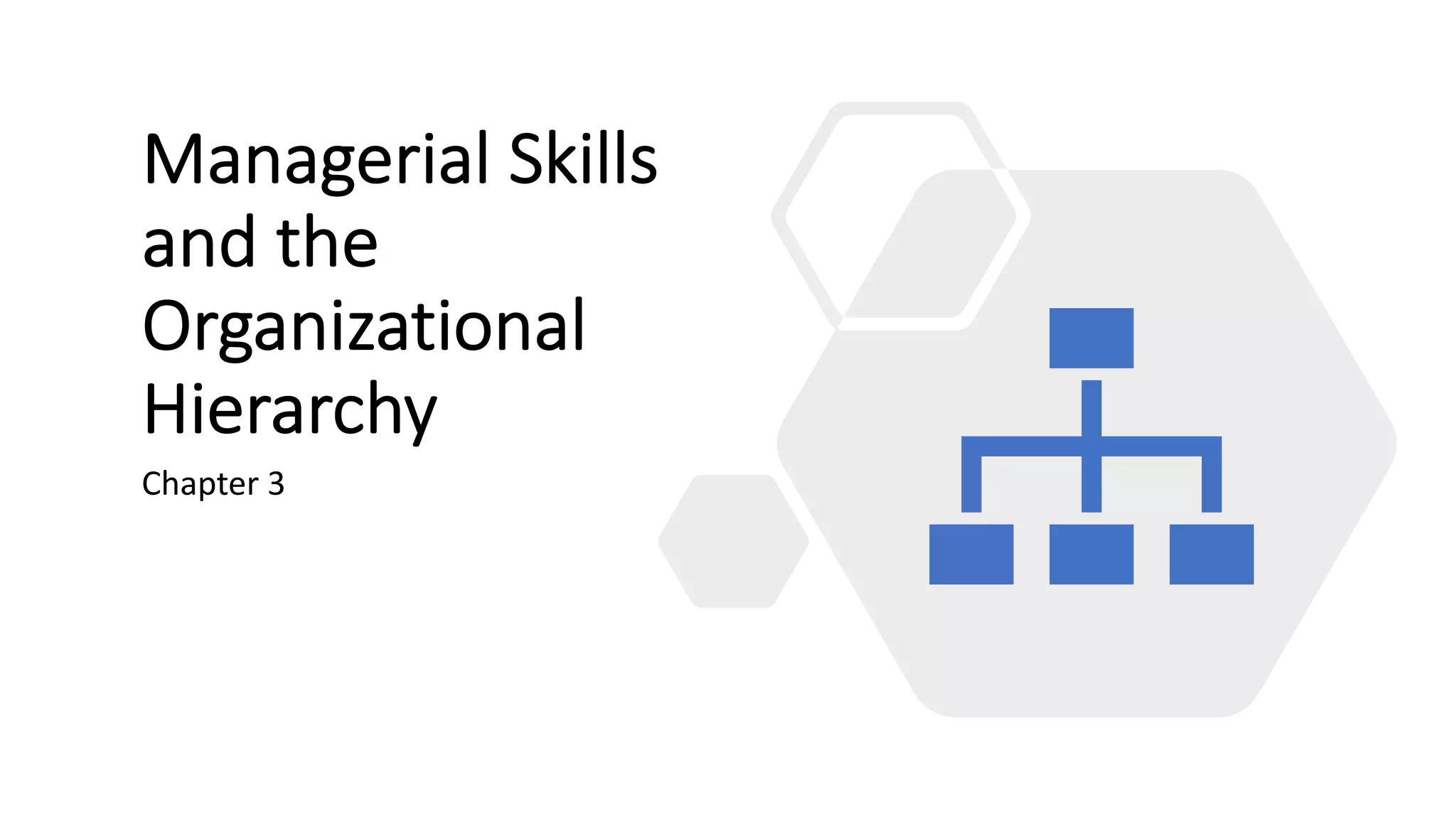 Managerial Skills and the Organizational Hierarchy discusses the types of managerial skills needed at different levels of management. It identifies three basic skills - technical, human, and conceptual skills. Technical skills are most important for first-line managers, human skills for mid-level managers, and conceptual skills for top-level managers. The document also discusses diagnostic and analytical skills as important managerial skills that are developed through both education and experience.