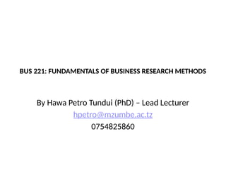 BUS 221: FUNDAMENTALSOF BUSINESS RESEARCH METHODS