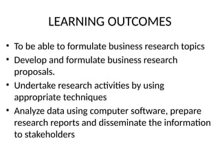 • Tobe able to formulate business research topics