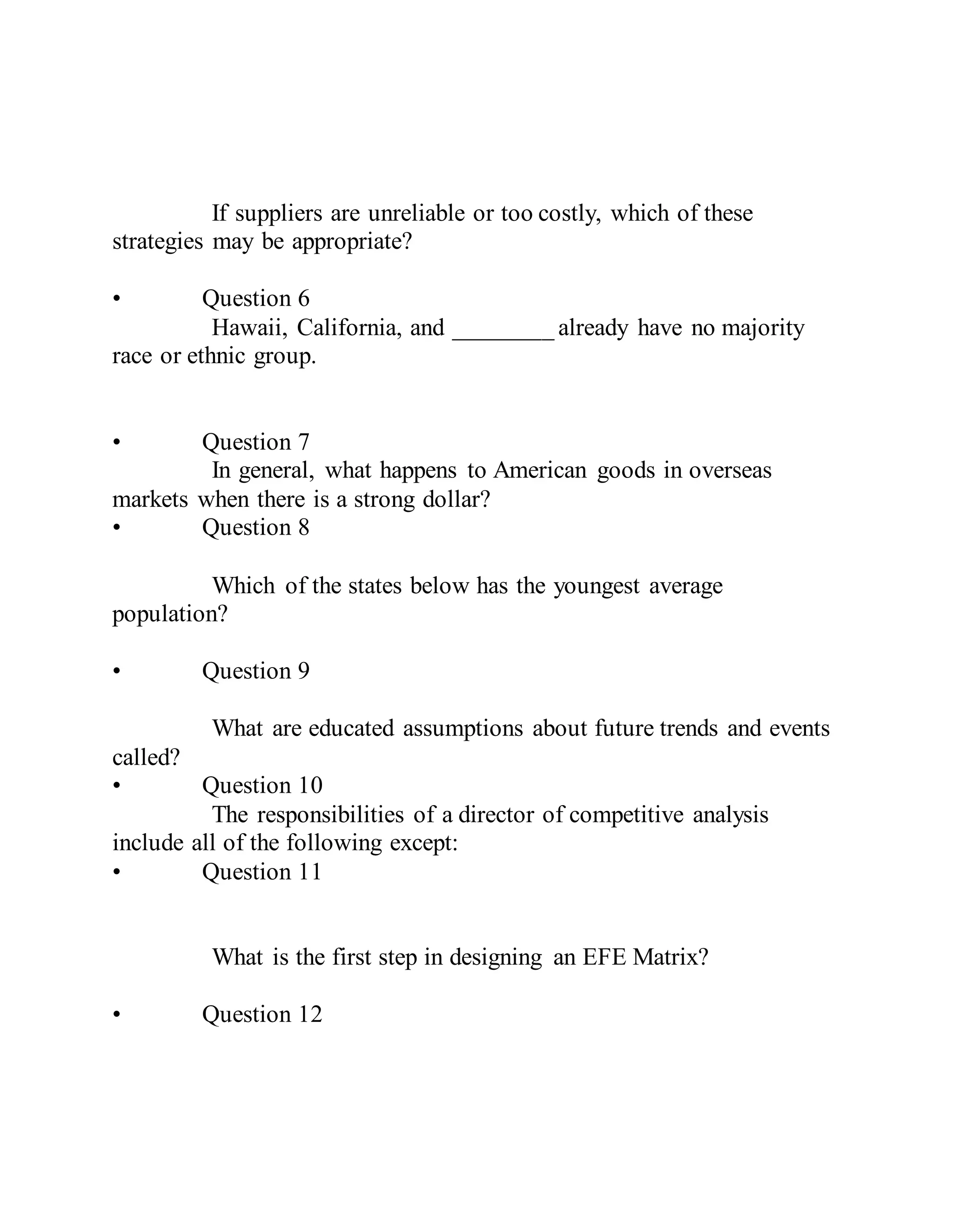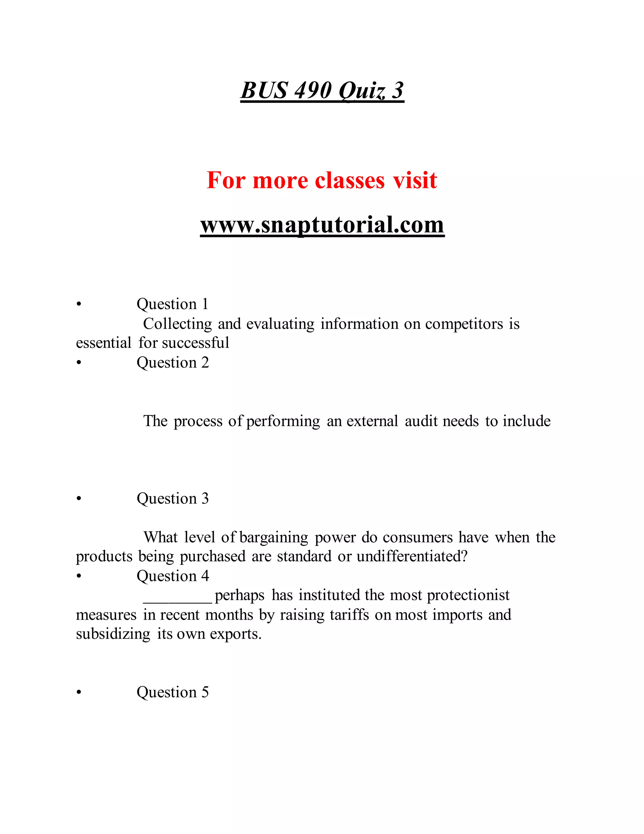 The document outlines quizzes and assignments from a business management course, focusing on strategic management concepts, market analysis, and competitive strategy formulation. It emphasizes the need for conducting thorough competitive audits, understanding consumer behavior, and applying various analytical matrices for case analysis. The assignments require students to research public corporations, analyze strategies, and develop recommendations for improvement over a specified time frame.
