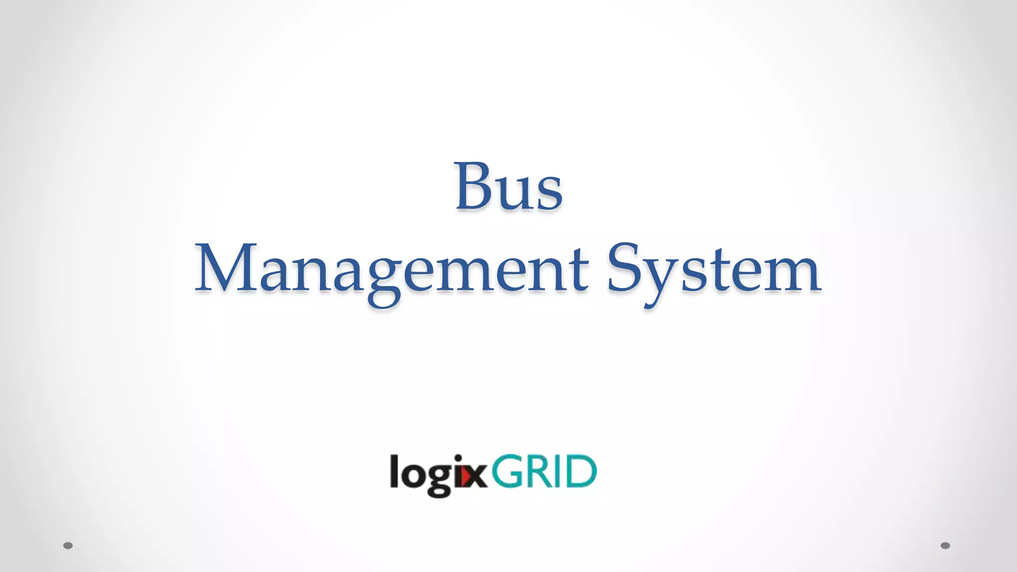 This document describes a bus management system with three key components: fleet tracking, ticketing, and fleet maintenance. The fleet tracking system uses GPS to monitor vehicle location in real-time and track metrics like mileage and speed. The ticketing system allows ticket collectors to issue tickets from Android phones, print them using handheld printers, and upload details to a central server. The fleet maintenance system manages vehicle insurance, repairs, fuel usage, equipment, and generates reports.