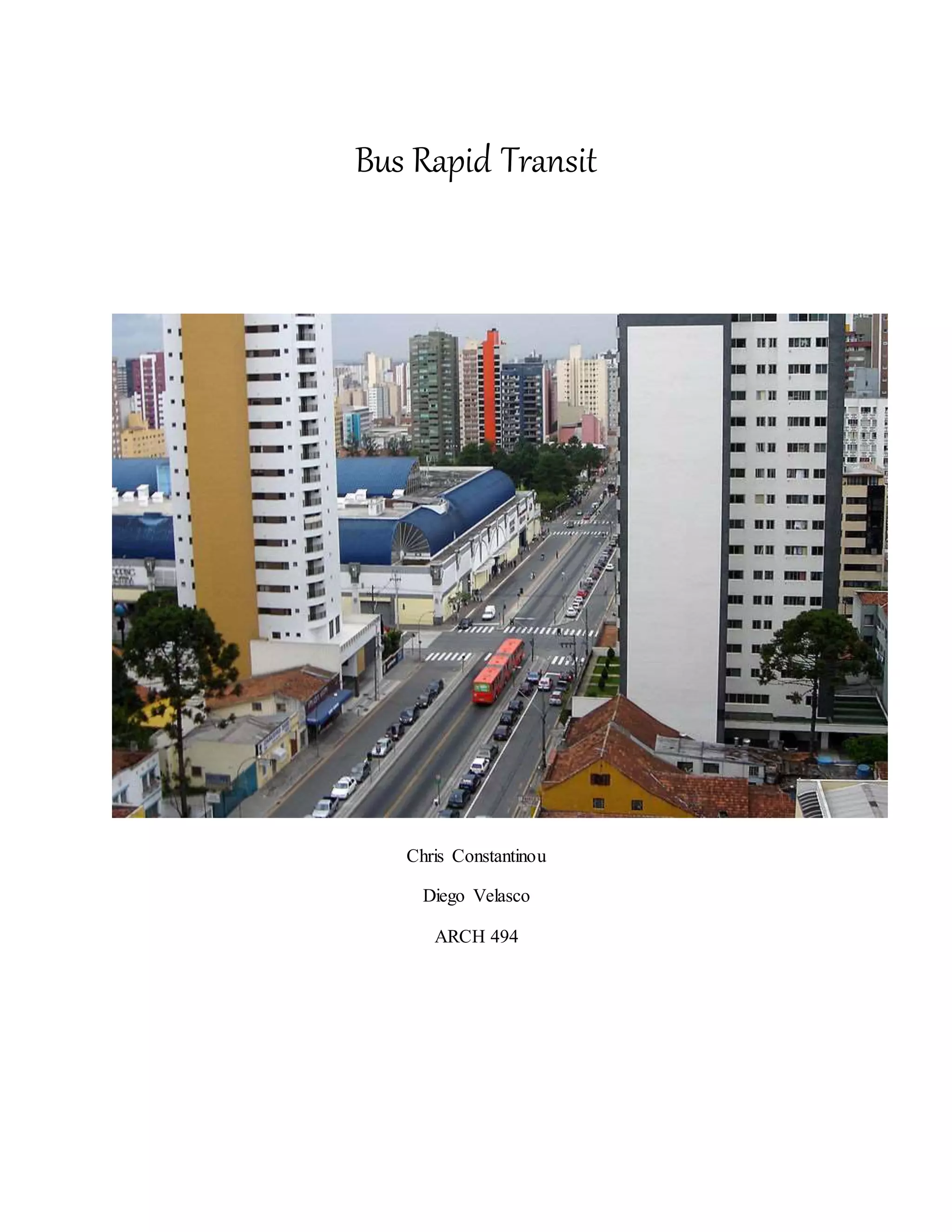 The document discusses bus rapid transit (BRT) systems in three cities - Curitiba, Brazil; Ottawa, Canada; and San Diego, California. It provides details on the history and development of BRT in each city. In Curitiba, the BRT system was pioneered in 1974 and features bi-articulated buses on dedicated lanes. Ottawa's BRT system utilizes dedicated transitways that are grade-separated from traffic. San Diego is working to implement a BRT system to address future population growth, but faces challenges due to California's car-oriented culture.