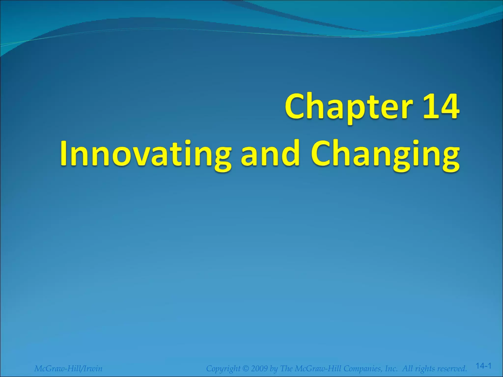 The document discusses assessing technology needs, acquiring new technologies, characteristics of innovative organizations, and managing change effectively. It provides learning objectives, forces driving technological development, ways to assess organizational needs and criteria for technology decisions. Methods of technology acquisition include internal development, licensing, and contracted development. The roles of a CIO/CTO and innovation team are described. Characteristics of innovative companies include an organizational culture that encourages creativity and learning from failures. Organizational development techniques and a three-stage change management model are also summarized.