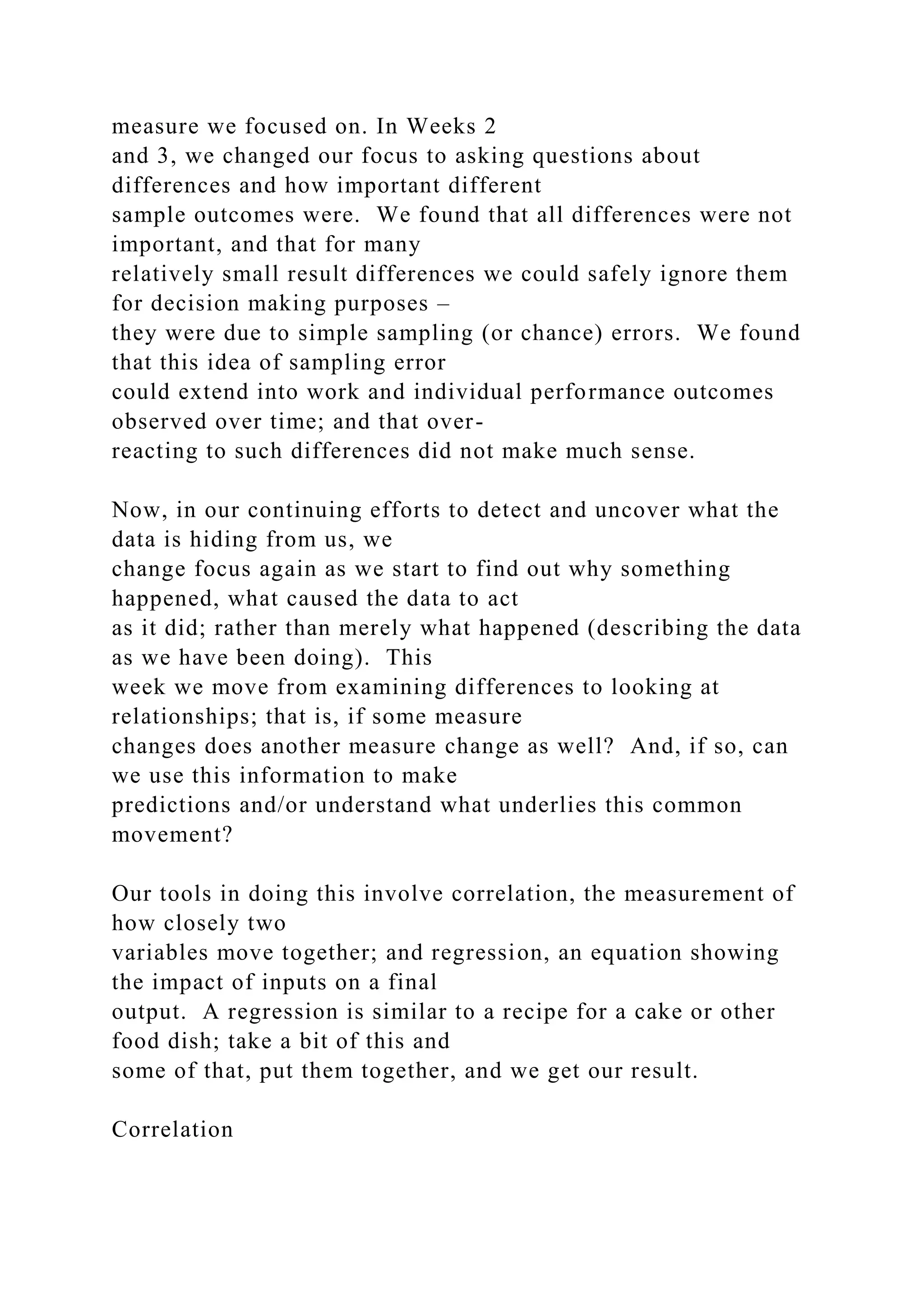 This lecture focuses on examining relationships between variables through correlation and regression analysis. It outlines basic concepts and tools for understanding how variables may change together, emphasizing the importance of distinguishing between correlation and causation. The lecture covers both linear and multiple regression models, explaining how they can help predict outcomes based on input variables.