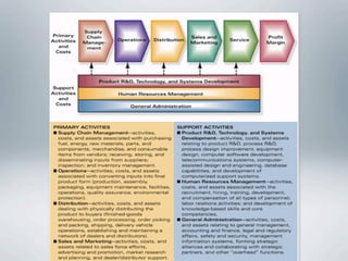 3. A discussion of internal analysis techniques like value chain analysis, SWOTT analysis, and Porter's 5 forces.