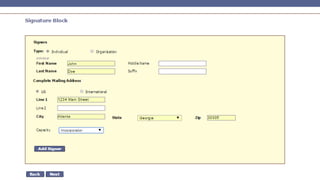The document presents a comprehensive overview of business formation, focusing on the legal perspectives of establishing a company, including the importance of having a business entity for limited liability and asset protection. It outlines the differences and similarities between corporations and LLCs, their taxation structures, and the necessary steps for forming a business in Georgia. Furthermore, it highlights the significance of obtaining professional assistance for various legal and operational considerations during the setup process.