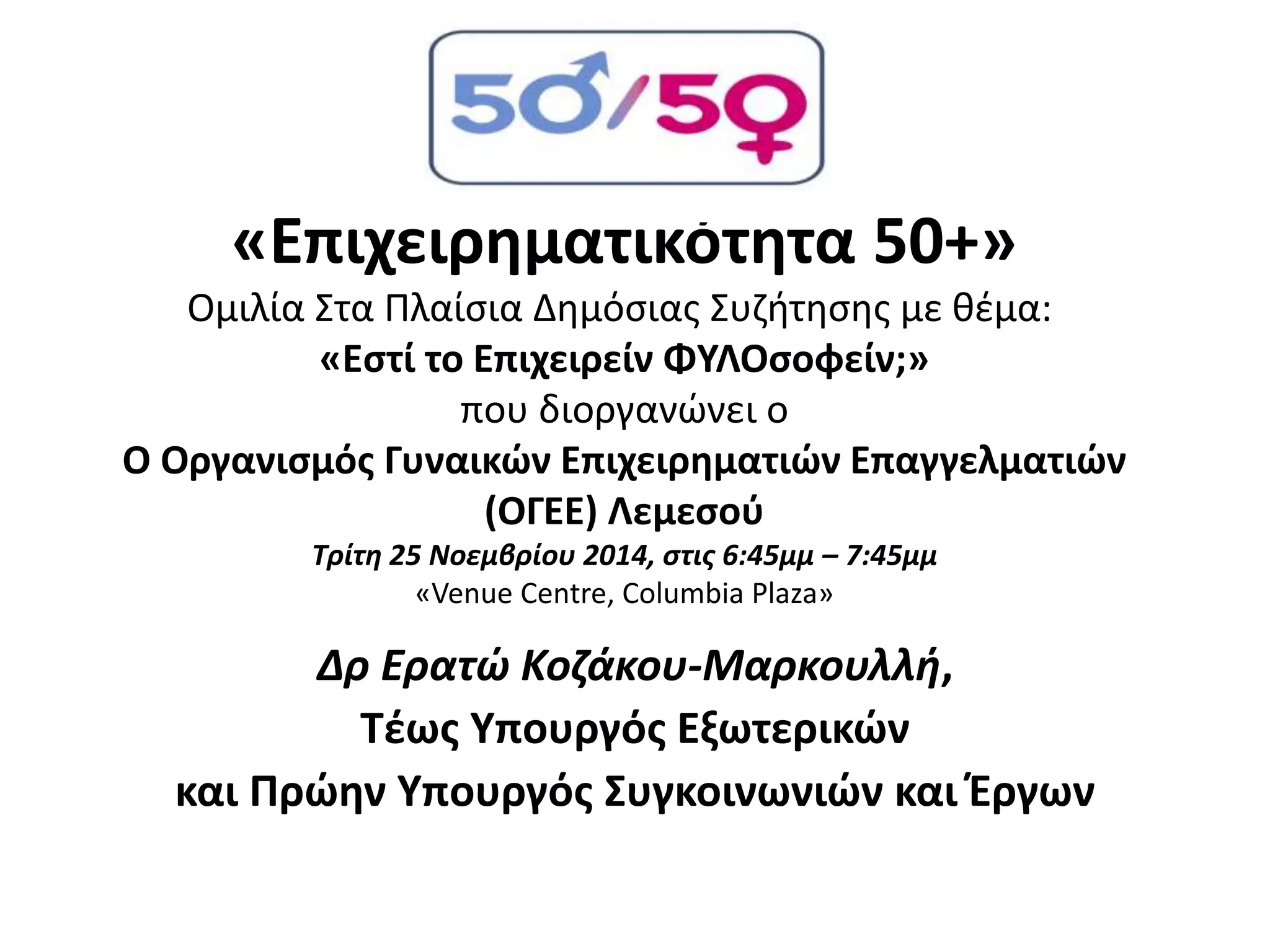 A PowerPoint presentation on the representation of Women in all decision-making bodies in the political and economic sphere. What is the situation in the European Union, in Cyprus and what are the Best Practices at a global level. What are Quotas and how effective they are? What are the results in countries that have adopted quotas.