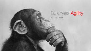 This document discusses business agility and the need for organizations to adapt to change. It notes that complexity and bureaucracy can block innovation, creating a dilemma for companies. It advocates that organizations develop an agile culture and adopt agile practices like iterative development, dedicated cross-functional teams, and open collaboration. The document provides a 10-step process for leadership to define a vision and roadmap to increase business agility through frequent feedback and communication.