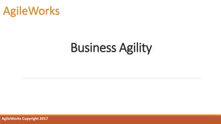 The document outlines the importance of business agility and provides a framework for leaders to understand its significance at both organizational and personal levels. It emphasizes the ability to respond rapidly to change, alongside a growth mindset and continuous learning. Participants are encouraged to discuss ways to improve their organization's business agility.