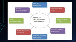 The document discusses the key aspects of business communication, including: