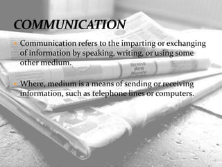  Communication refers to the imparting or exchanging