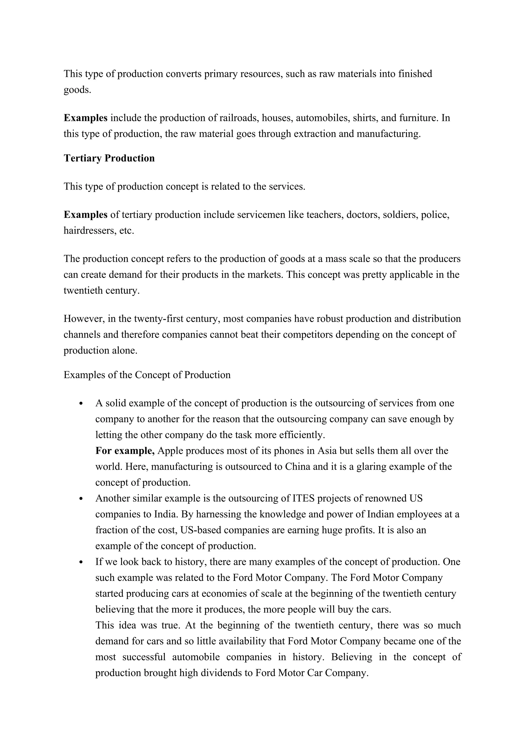 The document discusses the theory of production, emphasizing the concept of production functions, which can be categorized into linear and non-linear forms. It outlines the types of production processes (primary, secondary, and tertiary), the importance of factors of production, and introduces the production function as a mathematical representation that optimally combines inputs. Additionally, it covers concepts such as economies of scale, the law of variable proportions, and the differentiation between short-run and long-run production functions.