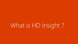 This document discusses big data and how organizations can gain insights from data. It notes that by 2015, organizations that have built a modern information system will financially exceed their competitors by 20%. It describes different types of structured and unstructured data organizations are dealing with, including machine-generated data from sensors, satellites, science experiments, videos, and more. It also lists common uses of big data like recommendations, smart meter monitoring, equipment monitoring, advertising analysis, and more. The document then discusses how Microsoft can help users gain better insights through self-service BI, connecting and collaborating in Office 365, and answering questions. It outlines different data sources including non-relational data stored in HDInsight on Azure.