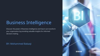 Business intelligence (BI) is the practice of analyzing data to enhance strategic decision-making and gain a competitive advantage. It involves components such as data collection, integration, analysis, and reporting, which collectively improve operational efficiency and drive growth. As organizations increasingly rely on BI, future trends will likely include advanced AI, predictive analytics, and mobile BI applications.