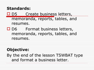 - Complimentary close such as "Sincerely" at the left margin to end the letter