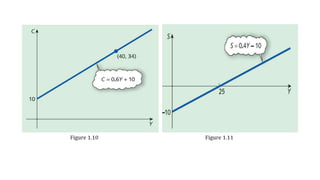 Economic applications of linear and quadratic models are also discussed. Functions and curves are defined in economics, with examples like the relationship between money earned and hours worked given as a simple linear function.