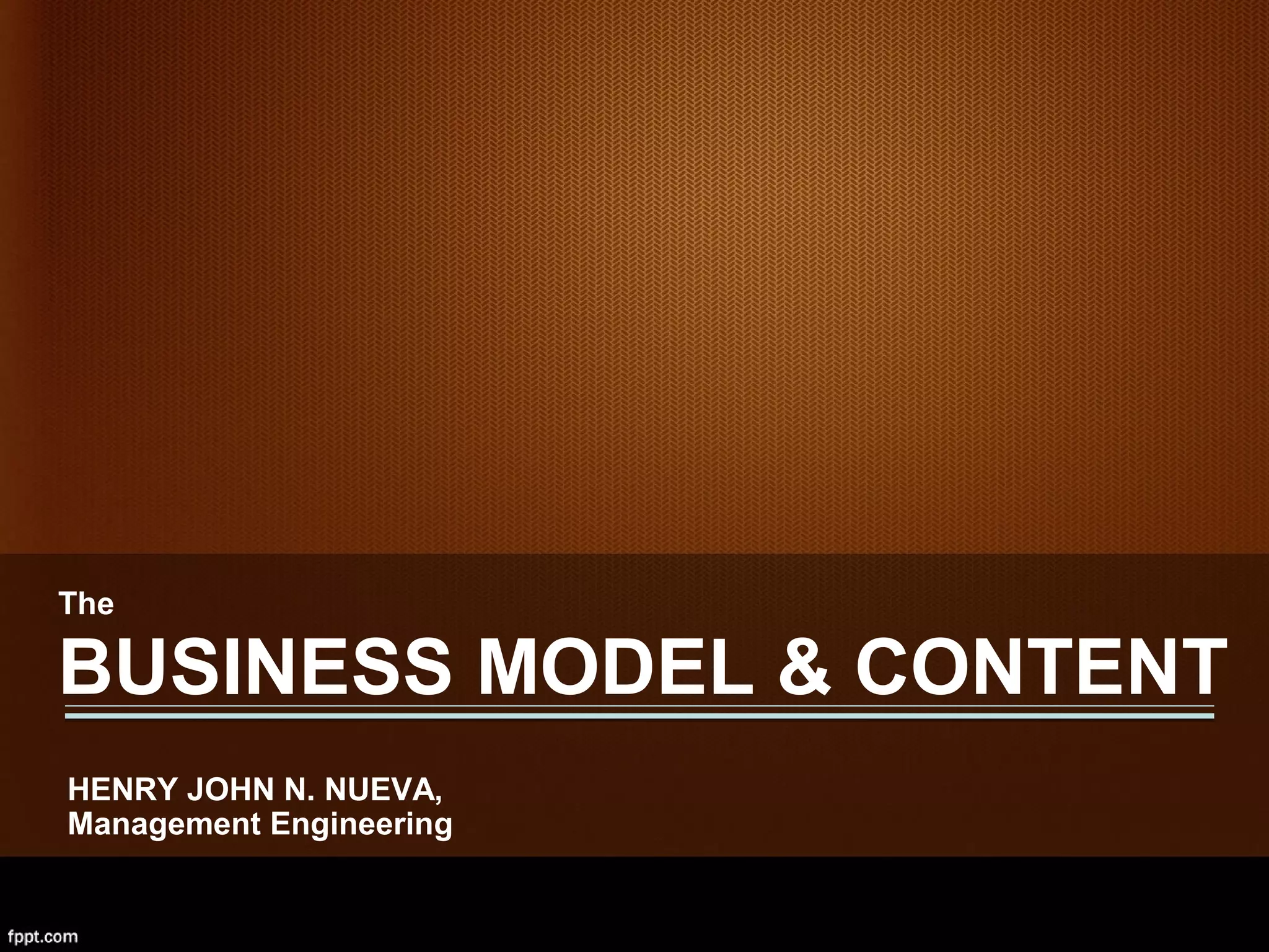 The document discusses an engineer's role in developing an understanding of an enterprise's business model using five principles: strategic analysis, business process analysis, business performance management, risk assessment, and continuous improvement. It provides details on each principle, including analyzing external forces, markets, core processes, products/services, customers, and key performance indicators. It also discusses assessing and managing risks. The overall aim is for the engineer to construct an integrated business model that identifies the enterprise's value proposition and opportunities to enhance performance and mitigate threats.