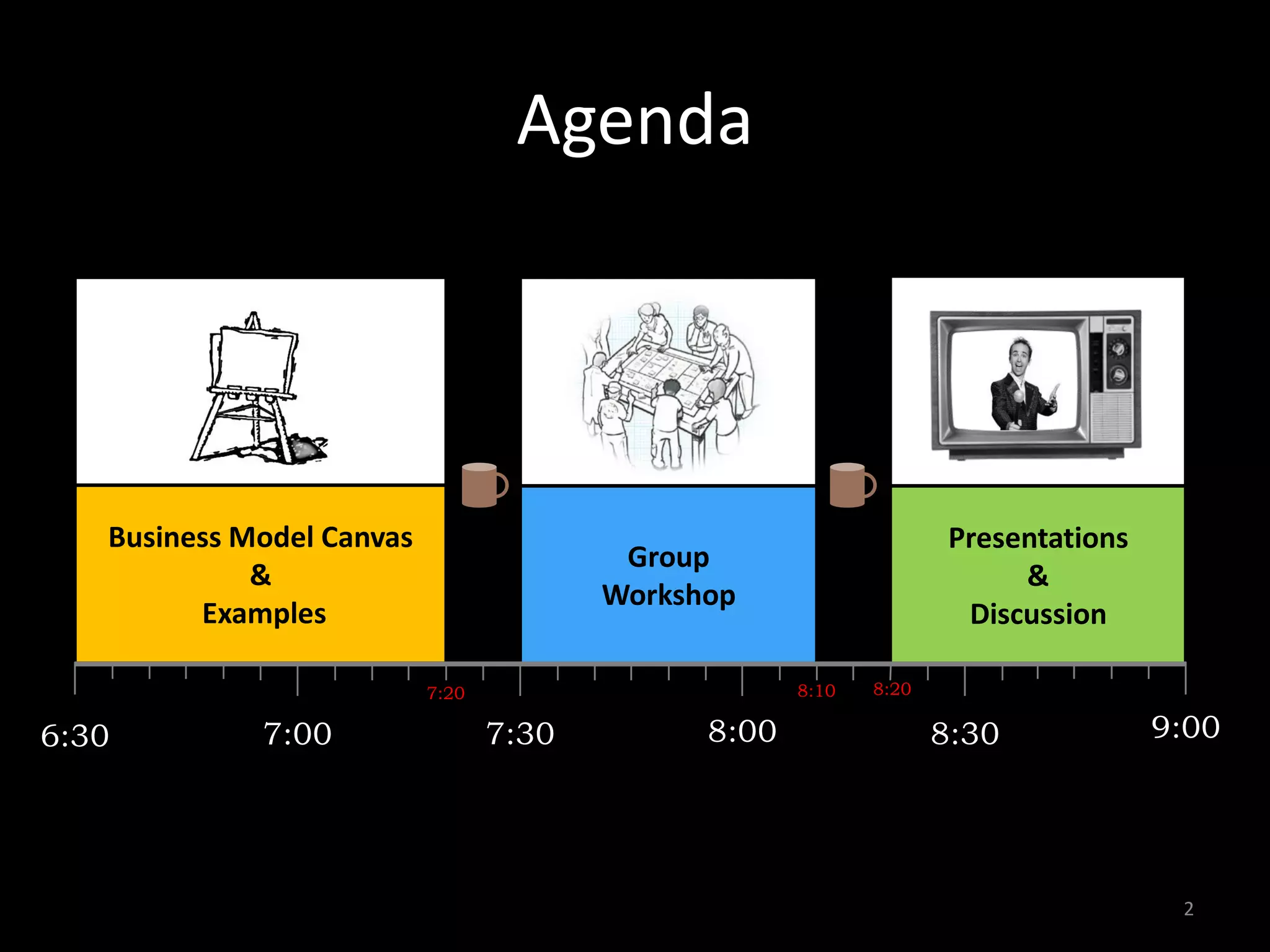 The document outlines a workshop agenda focused on business model canvases, including their creation and analysis. It explains the components of a business model, such as customer segments, value propositions, and revenue streams, along with examples like lemonade stands and VoIP calls. The workshop emphasizes validating model assumptions with customers and includes instructions for group activities and discussions.