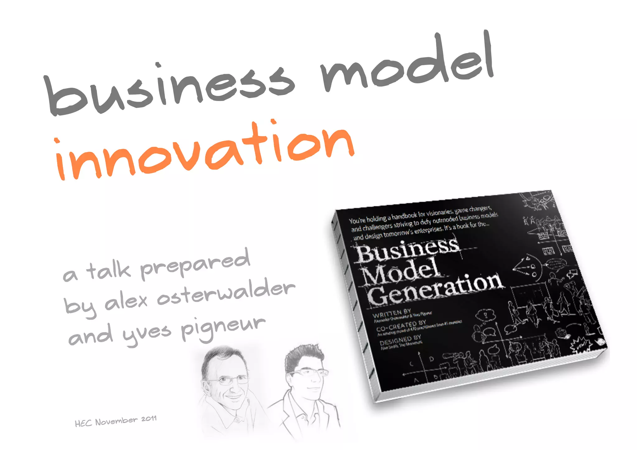 This document discusses business model innovation. It begins by describing business model environment assessment and patterns. It then discusses service innovation, process innovation, and business model innovation. Examples are given of Flickr innovating its business model. The talk will cover scenario and storytelling, task analysis, prototyping, service blueprints, and process management for service design. It will also discuss measuring innovation and moving from service to business models.