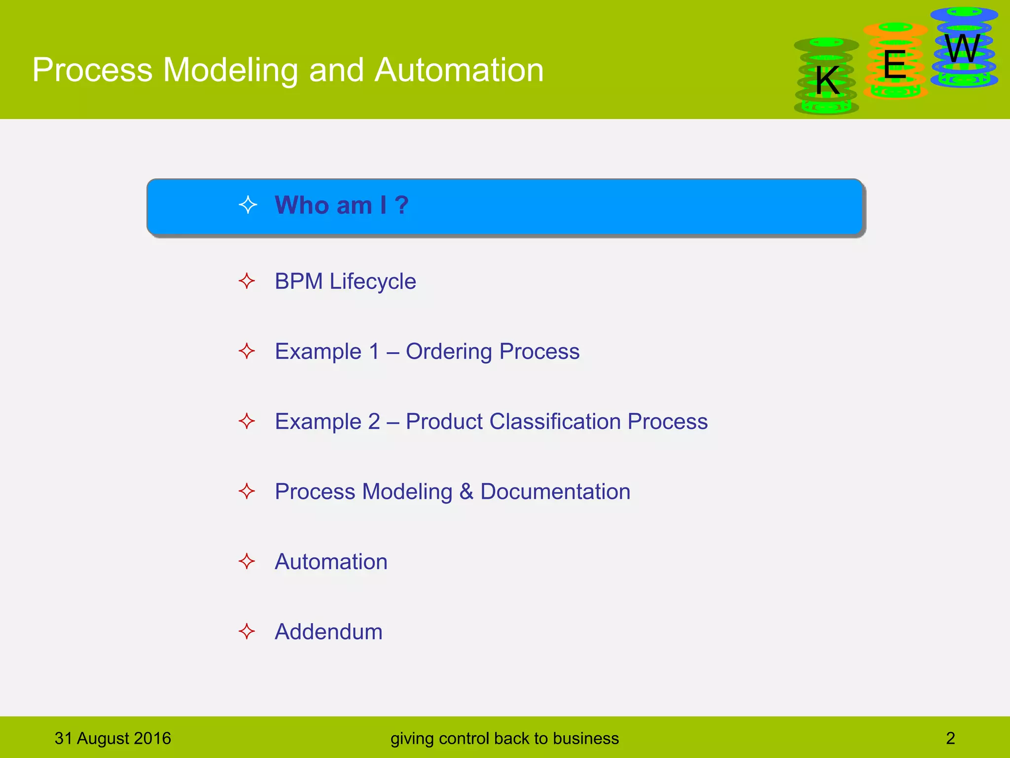 The document discusses business process modeling and automation aimed at enhancing control within organizations, detailing a defined BPM lifecycle that includes stages such as process discovery, analysis, redesign, and implementation. It provides case studies on optimizing ordering and product classification processes, highlighting improvements in efficiency, effectiveness, and customer satisfaction. The importance of stakeholder involvement in identifying and modeling key business processes is emphasized as a means of achieving better organizational outcomes.