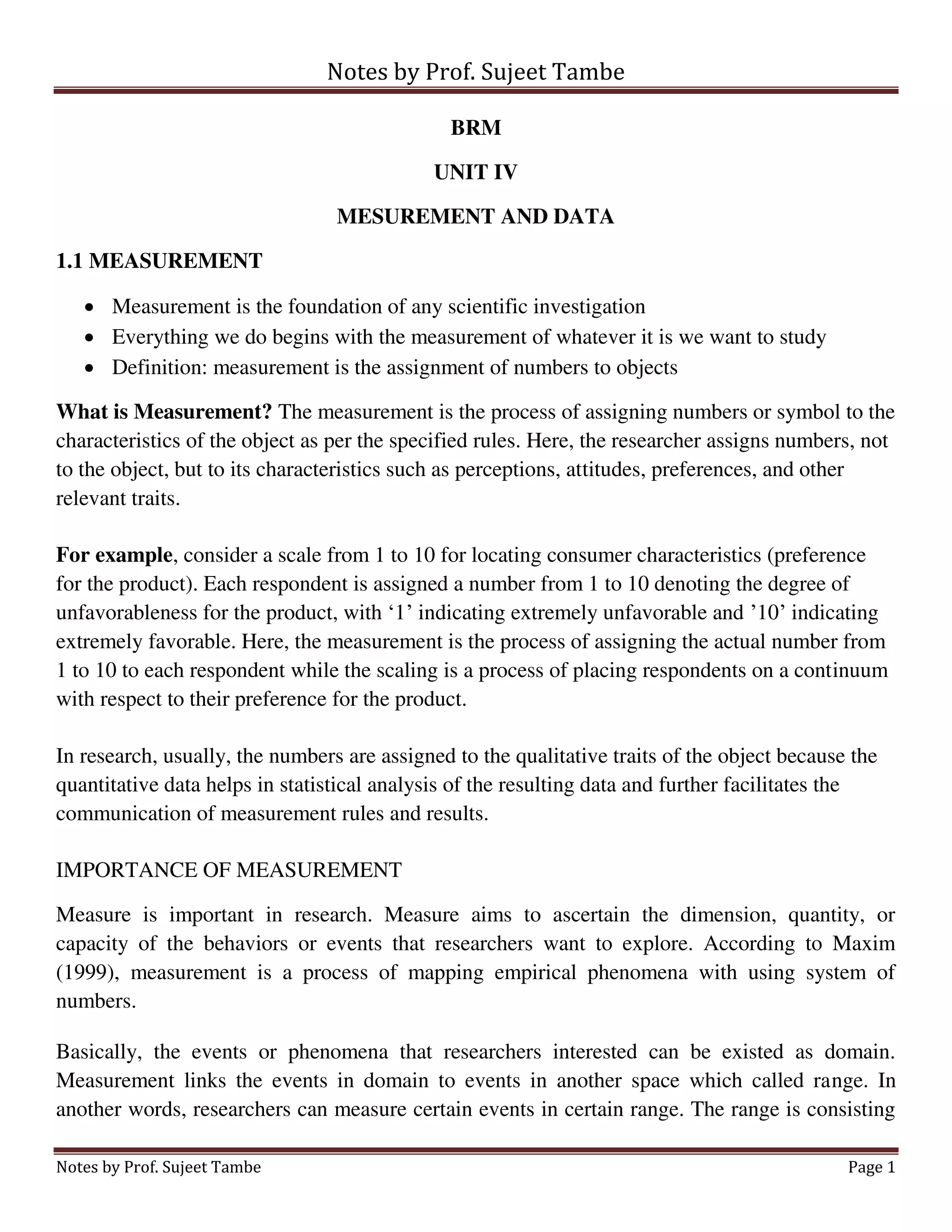 1. Measurement is the foundation of scientific investigation and involves assigning numbers or symbols to characteristics of objects.