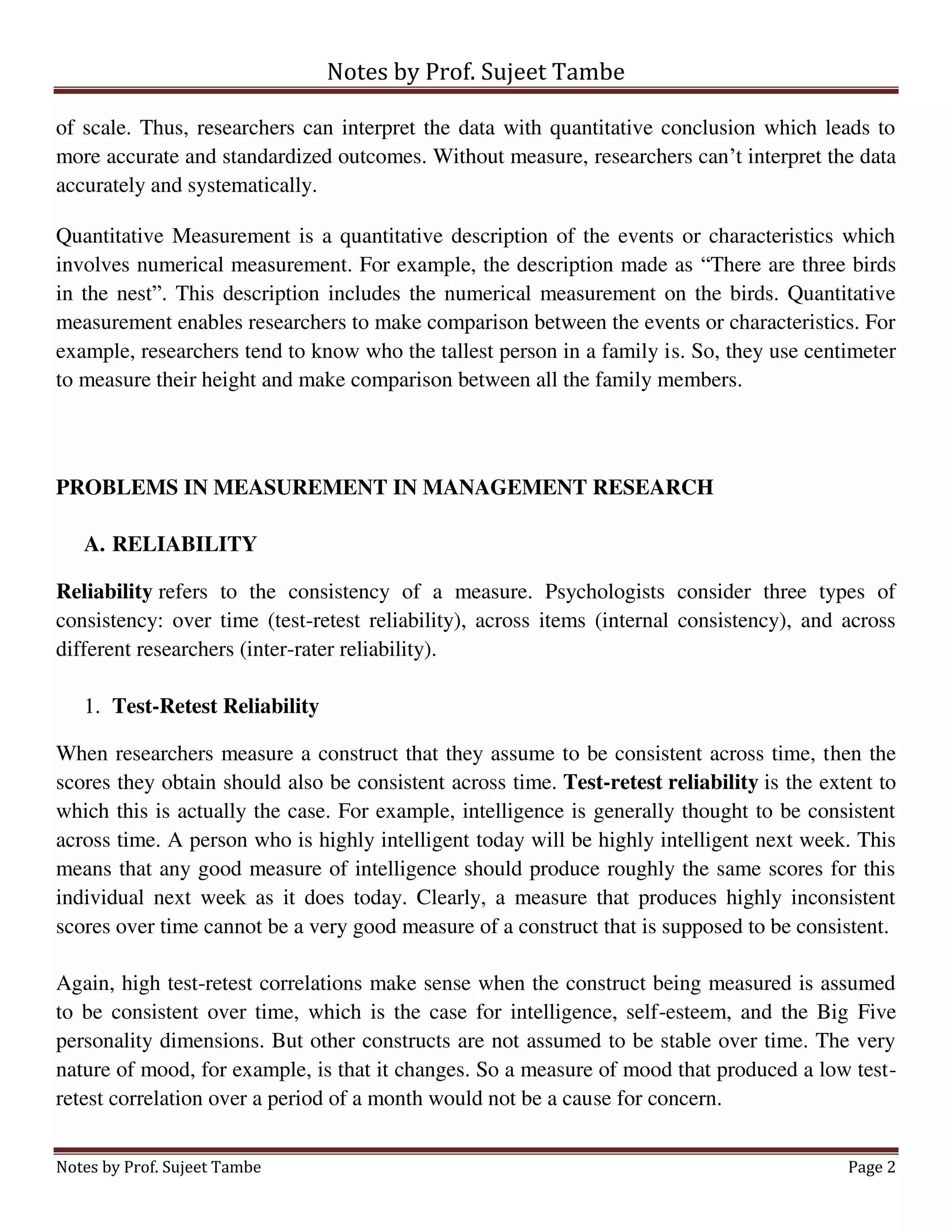 3. Reliability and validity are important for ensuring measurements accurately capture the construct being measured. Reliability looks at consistency over time, across items, and between raters. Validity compares measurements to conceptual definitions and whether scores relate to other expected outcomes.