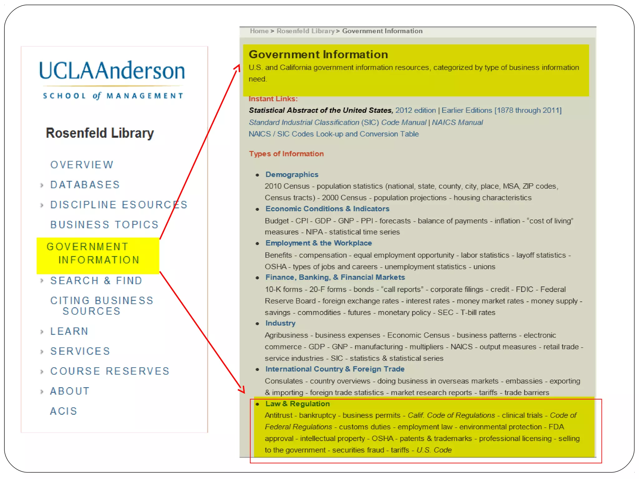 This document summarizes strategies and sources for locating business information. It discusses developing efficient research strategies and finding industry, company, market, consumer, and government information. Specific databases and resources are outlined for obtaining industry reports, company profiles, market research, demographic data, and information on regulations. Government sources mentioned include NAICS, Census data, CPSC, FCC, and FDA. The document encourages following up with the business librarian for additional assistance.