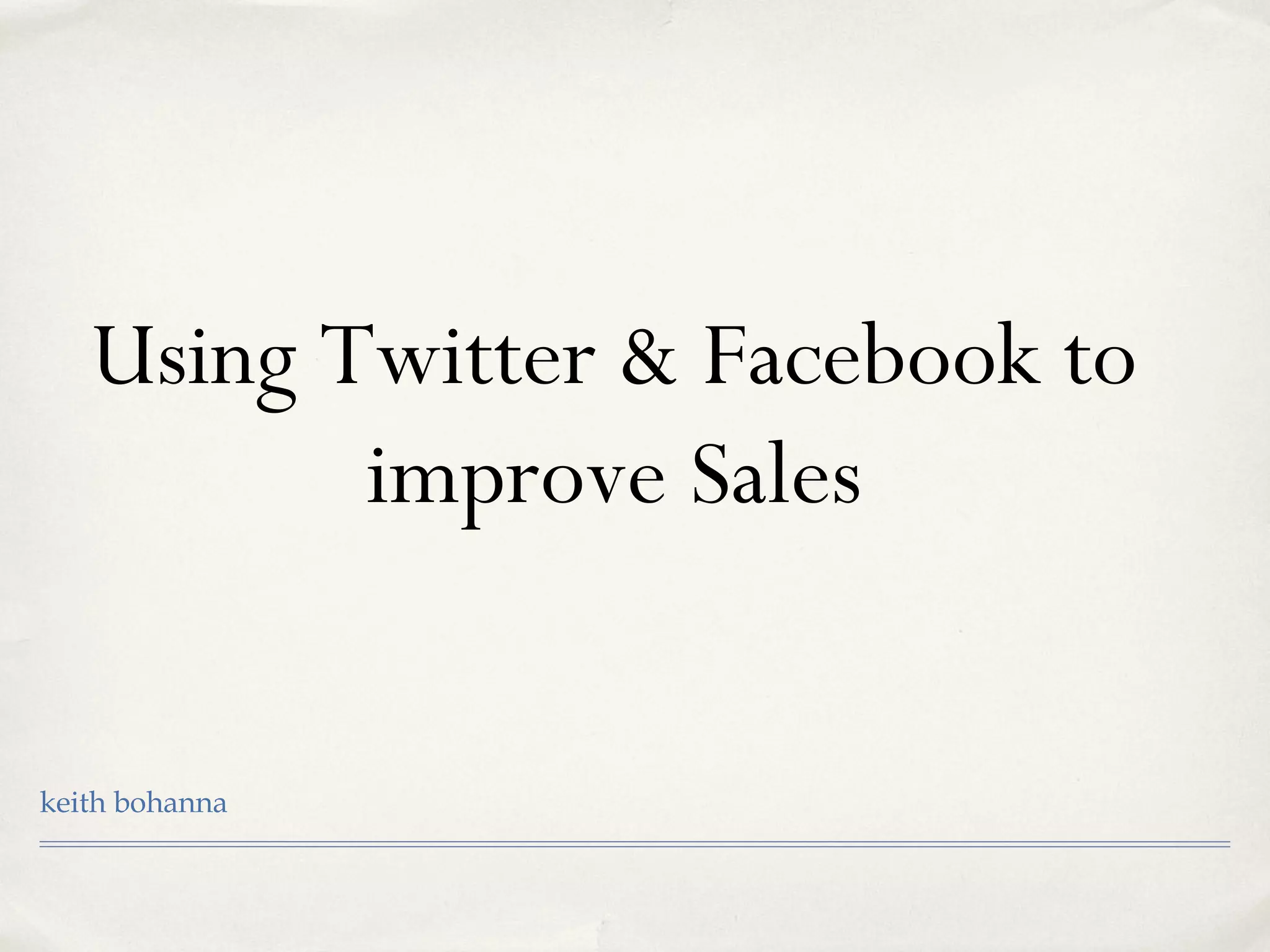 This document provides guidance on using Twitter and Facebook to improve sales. It discusses promoting brands and businesses through social media by gaining followers and fans, posting engaging content, and monitoring conversations. Key aspects covered include setting up profiles and pages, sharing content across platforms, targeting ads, and engaging with other users through sharing, replying, and answering questions.