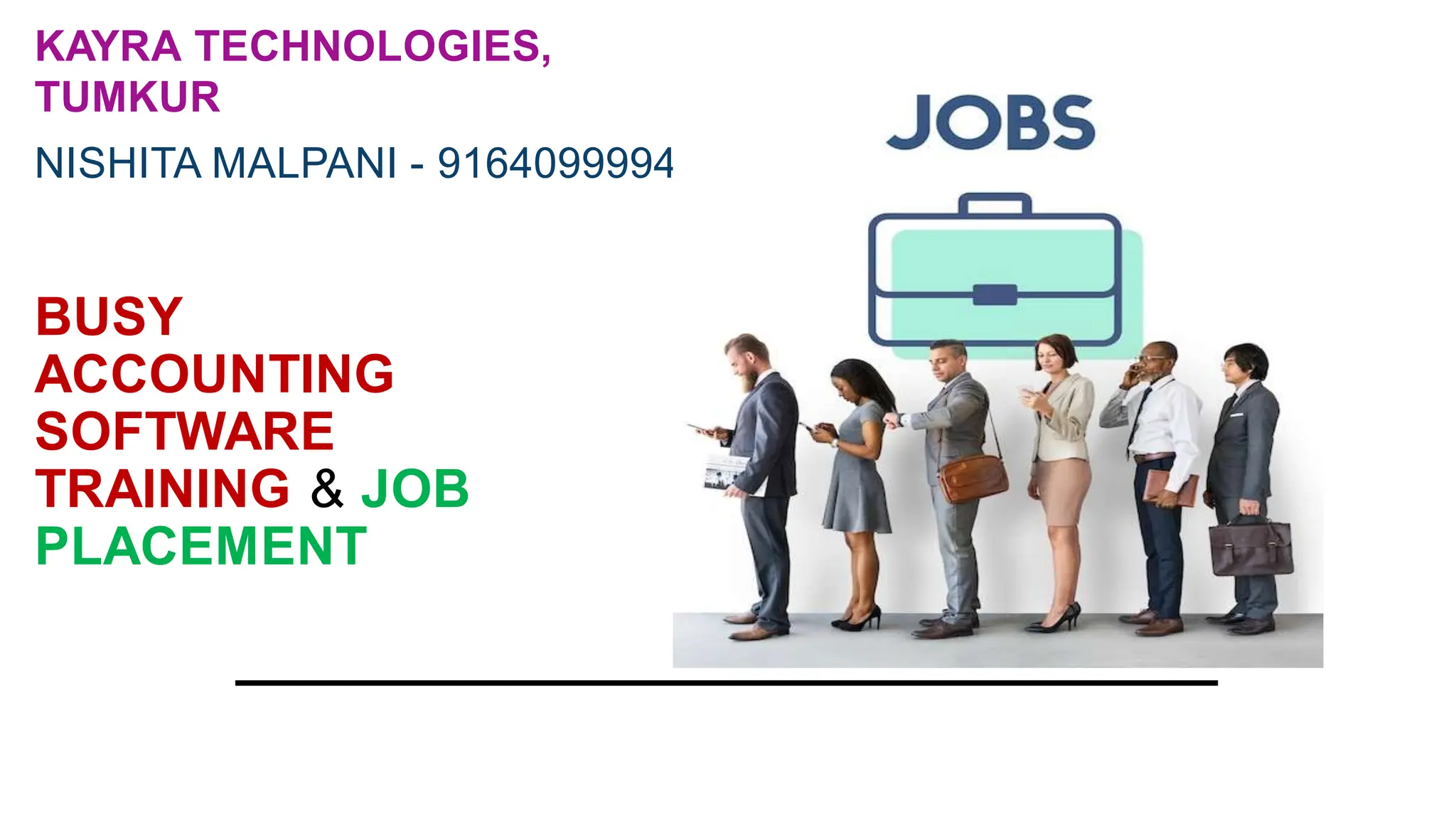 Kayra Technologies offers training and job placement for Busy accounting software, targeting individuals and academies. The software is recognized as a leading GST accounting tool with extensive course offerings, including hands-on training and certification. Students are presented with various career opportunities post-training, facilitated by digital content and a robust assessment process.
