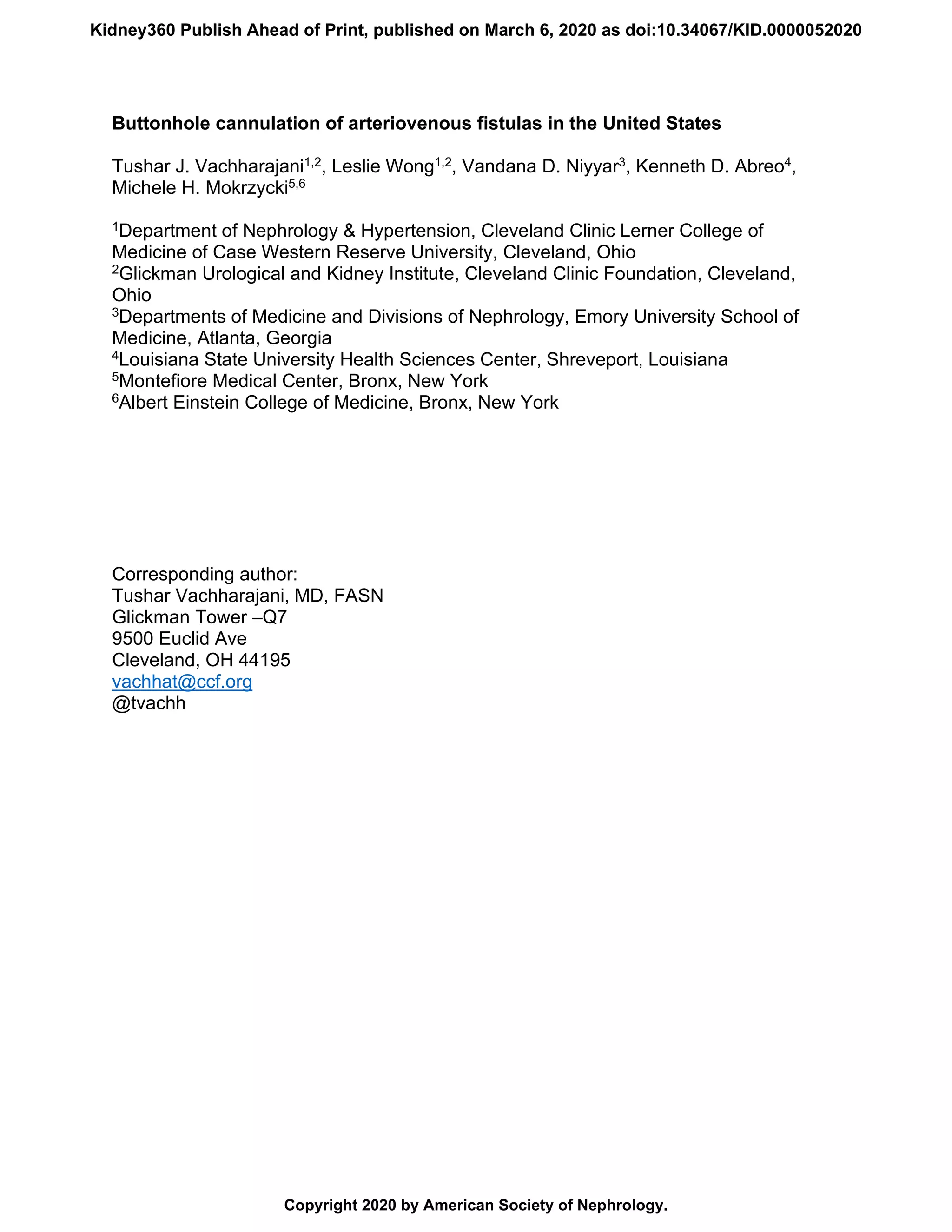 This document discusses the buttonhole cannulation technique for vascular access in hemodialysis patients. It provides a history of the technique, beginning in the 1970s in Poland. Early experiences in the US showed benefits like reduced pain, infiltration, and hematoma rates compared to rope-ladder cannulation. The technique involves creating fibrous tracts at constant needle insertion sites using repeated cannulation with sharp then blunt needles. Correct technique includes proper site selection, needle angle/depth, disinfection, and complete scab removal to prevent infection. Larger US studies are still needed to better evaluate risks and benefits.