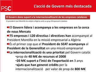 De les accions del Govern del president Montilla detallem: