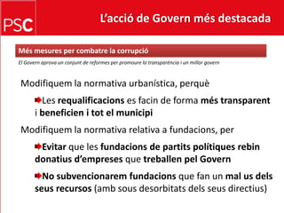 De les accions del Govern del president Montilla detallem: